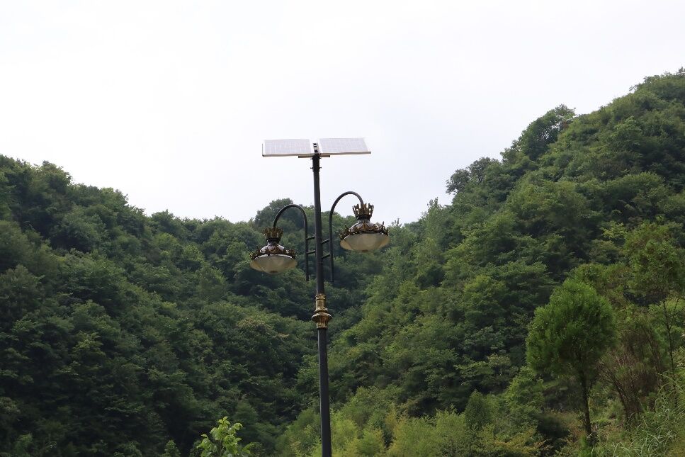 在去调研的路上遇到的太阳能灯。村民们说道:“一束灯光,就是一份温暖,再也不用担心摸黑回家了。”