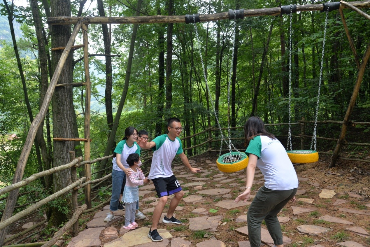 图为实践队队员在和蔓蔓玩游戏。简简单单的小游戏却能换来蔓蔓一整天的快乐。