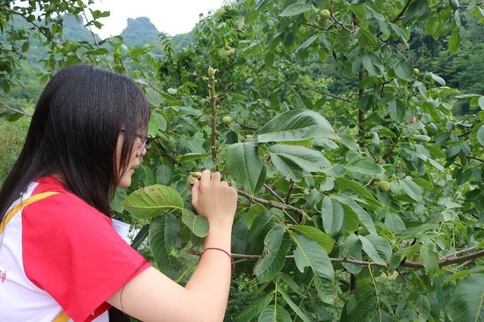 (通讯员 卢泽如)8月5日,我校农学院暑期实践服务队以“助力精准脱贫,聚力乡村振兴”为主题重返郑家垧村,对郑家垧村的核桃树挂果情况进行调研。实践团队于5日上午10点20分到达核桃基地,并查看了核桃的结果情况。令人欣喜地是核桃已成功挂果,这意味着今年三月份村里的集中技术培训是成功的。