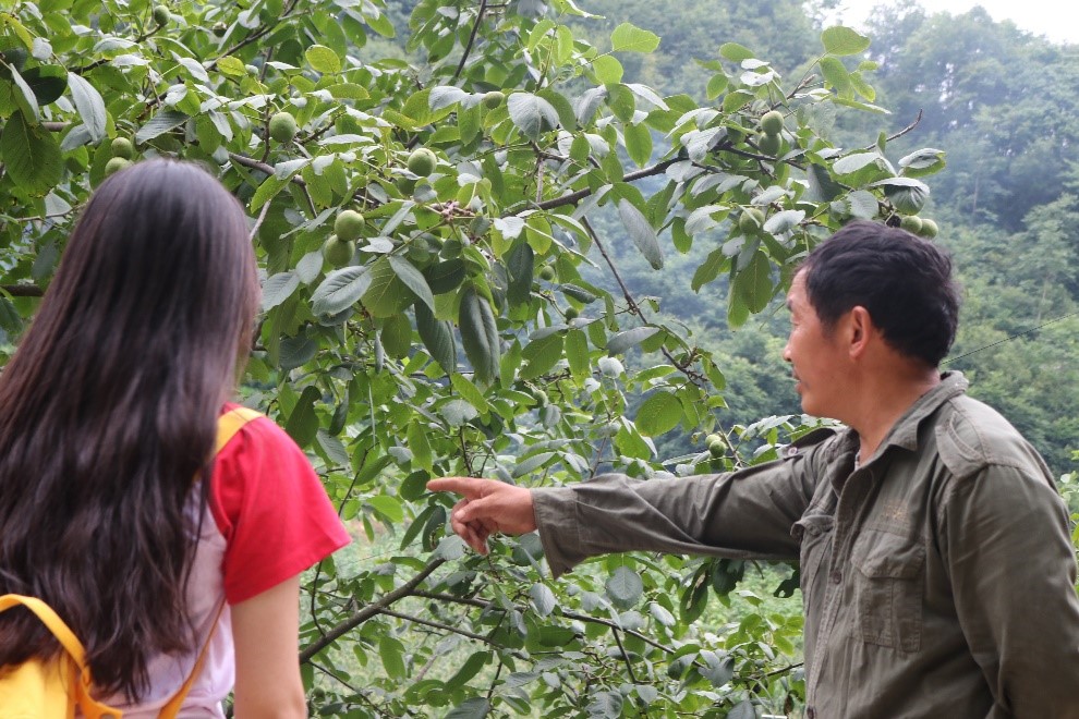 核桃种植户告诉实践团队核桃在这两个季度中的成长过程