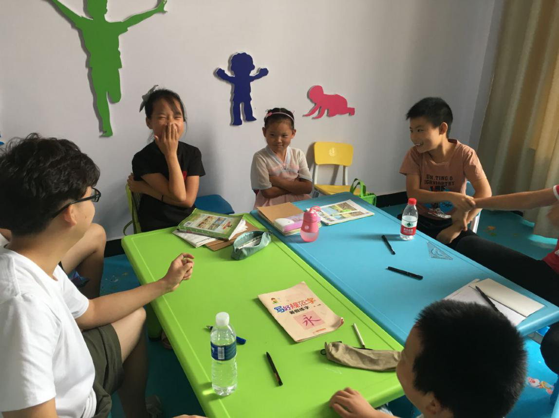 志愿者除了每天辅导小朋友写作业,还给他们讲述历史、科普科学知识,开拓他们的眼界。暑期大部分时间气温都是很高的,但每次没出太阳的早上,志愿者们都会带领小朋友们走出教室,活动筋骨,开展各种各样的活动。