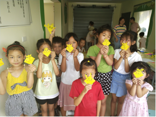 当然,孩子们也一定会记得:一年暑假有一位姐姐来教过我们,她让我们叫她“卢老师”,每次叫她,她总会笑;她上课时很会引导我们思考,为了鼓励我们还经常给我们发好看的尺子和铅笔;下课时,她也和我们一样喜欢下棋、踢毽子、跳绳,还会陪我们玩“萝卜蹲”的游戏呢。还有一次在操场打篮球,她还没打过我哩!我觉得她画的画儿没有程老师的好看,但教我们做的皮卡丘书签还蛮好看的。卢老师那次给佳欣做的生日帽好好看,其实我也想要来着,我也想快点过生日……