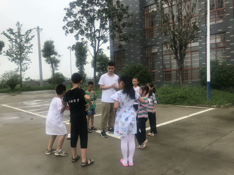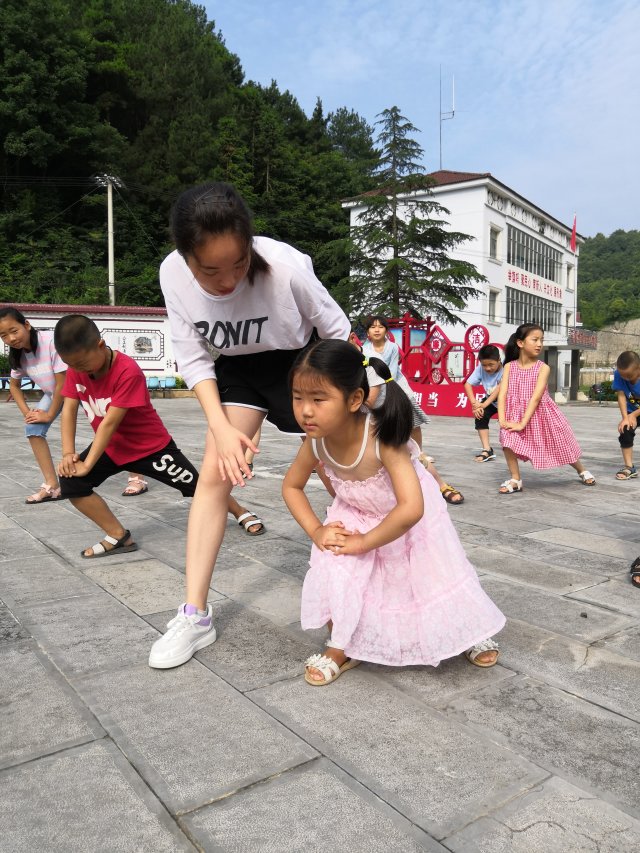 7月20日,松滋志愿者李平带孩子们上体育课