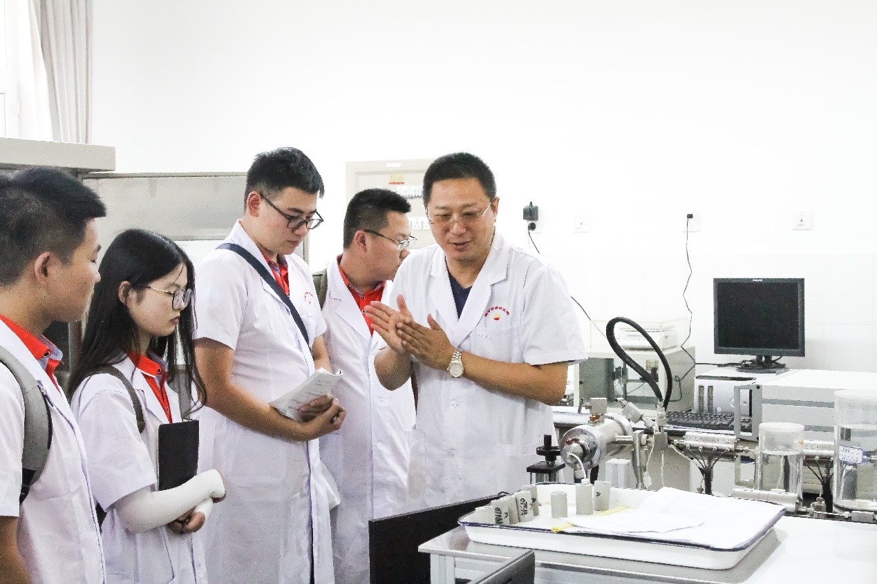 研究员杨伟鸿给实践队员介绍一些前沿检测仪器