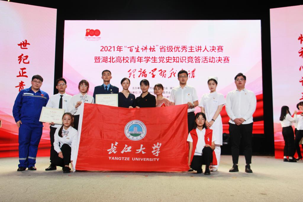 (通讯员 邢宇)百年恰风华,世纪正青春。6月19日下午,由团省委、省学联主办的2021年“百生讲坛”省级优秀主讲人决赛暨湖北高校青年学生党史知识竞答活动决赛在武汉落幕。我校青马班学员王伟荣获“百生讲坛”省级优秀主讲人之“金牌主讲人”称号,并以全省第四名的成绩荣获决赛二等奖;党史知识竞答活动中,青马班学员余嵩、姚苏玲、吴伦广、孙振艳同学组成的团队挺进全省八强,获湖北省党史知识竞答决赛优胜队。