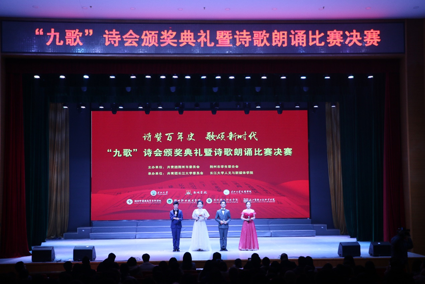 (通讯员 彭超 彭雨桐)“滴不尽相思血泪抛红豆,开不完春柳春花满画楼……恰似遮不住的青山隐隐,流不断的绿水悠悠”12月9日19时许,韦德体育bevictor东校区大礼堂歌声悠扬,一曲《红豆词》合唱致敬经典,饱含深情,拉开了首届荆州市高校“九歌”诗会颁奖典礼暨诗歌朗诵比赛决赛序幕。