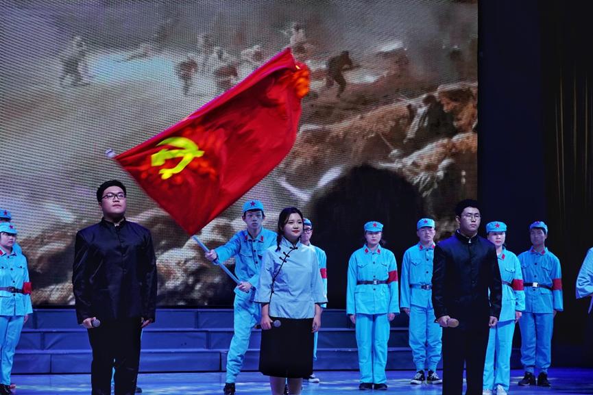 山河锦绣,盛世中华。《走向纪念碑》号角声声,吹来了中国高质量发展和人民安居乐业;《不忘初心》着眼军旅生活,刻画不负使命,砥砺前行的党员,演绎革命峥嵘岁月,气势雄伟,场景恢宏;《信念永恒》队形几经变换,复刻抗战经典场景,歌颂不屈抗争精神。酣畅淋漓的朗诵表演,诵出了盛世下国泰民安的大好风光。