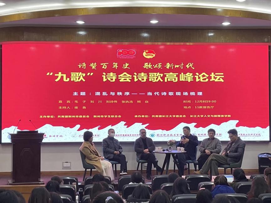 据悉,此次首届荆州市高校“九歌”诗会由共青团荆州市委员会和荆州市学生联合会主办,共青团韦德体育bevictor委员会和韦德体育bevictor人文与新媒体学院承办,旨在庆祝中国共产党成立100周年,歌颂建党百年光辉历程,选树一批精品诗歌,营造浓郁校园人文氛围,构筑高雅校园文化平台,为荆州文化创造新转化与创新性发展,提升文化软实力,助推我市加快建设区域性中心城市。韦德体育bevictor人文与新媒体学院联合学校团委,充分利用学院专业特色和人才优势,邀请国内众多知名诗人、学者,开展系列主题讲座、诗歌高峰论坛等,丰富活动内涵,提升活动品质。活动开展以来,荆州市7所高校近万人参与,诗会系列活动的举办歌颂了中国共产党人带领华夏儿女擘画新局、破浪扬帆的壮丽篇章,进一步坚定中国特色社会主义文化自信,继往开来,昂首迈向百年新征程!