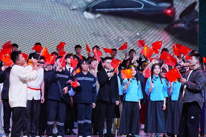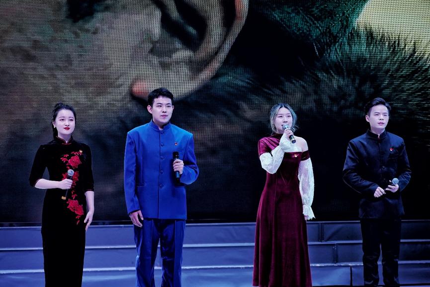在颁奖典礼中,张晋老师朗诵了《致中国青年》节选片段,整个会场掌声雷动。在晚会的最后,一舞《采薇》莲步轻移,襦裙漫卷,彰显华夏古韵,一曲《我爱你中国》寄寓情思,七弦泠泠,点燃观众激情。