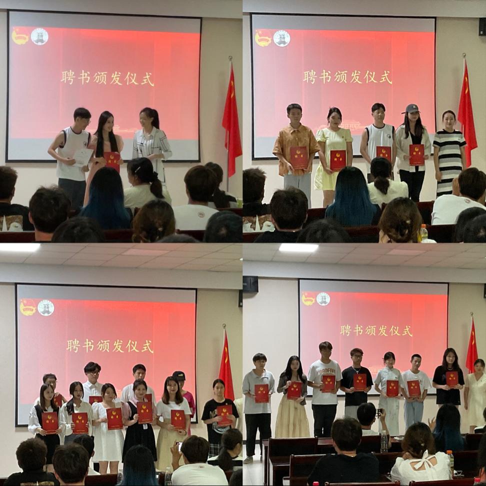 大会第四项是聘书颁发仪式。老师们分别为东西校区主席团代表、艺术指导,部门负责人颁发聘书,并与之合影留念。