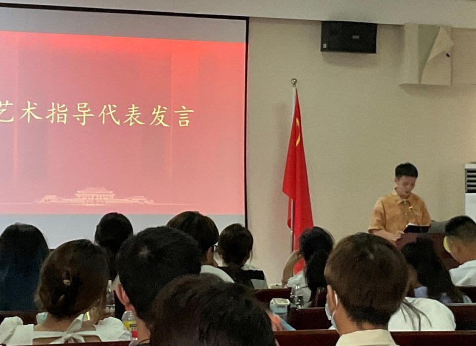 随后杨航学长作为主持部艺术指导代表艺术指导发言。他总结以他为代表的艺术指导在艺术团五年的工作经历和心路历程,分享艺术指导们在这一年来与团员亦师亦友的点点滴滴,对自己与团员逐步成长的感悟。他祝福各位团员在今后能把对艺术的热爱变成自己的北斗七星,在勇敢追梦的过程中收获惊喜。