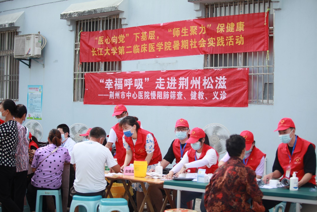 扎根基层助力乡村振兴,知行合一肩负时代使命。7月8日至15日,第二临床医学院组织7名临床医生和13名大学生奔赴松滋市卸甲坪土家族自治乡开展以“爱心医疗,振兴乡村”为主题的社会实践。深入当地基层,提供健康支持,团队累计义诊380余人,测量血糖476人次,测量血压689人次,测量肺功能424人次,发放药物及口罩444盒、问卷调查475份、宣传手册近500份,入户走访近20户。通过深入乡村一线开展医疗调研,更加牢固地树立了学生扎根基层、奉献基层的信念,鼓励学生用脚步丈量祖国大地,以青春赋能乡村振兴,以一身所学担负时代重任。
