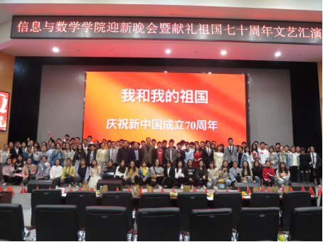 (通讯员 丁伟怡)壮丽七十载,奋进新时代。10月17日晚上7点,信息与数学学院迎新晚会暨献礼祖国七十周年文艺汇演在西校区农科大楼1058报告厅隆重上演。院党委书记高迎斌,副院长李向军,院党委副书记袁海山,院团委书记严星、辅导员钟赛、部分教师代表和嘉宾应邀参加共同欣赏精彩演出,共庆祖国七十华诞,喜迎我院2019级新生。