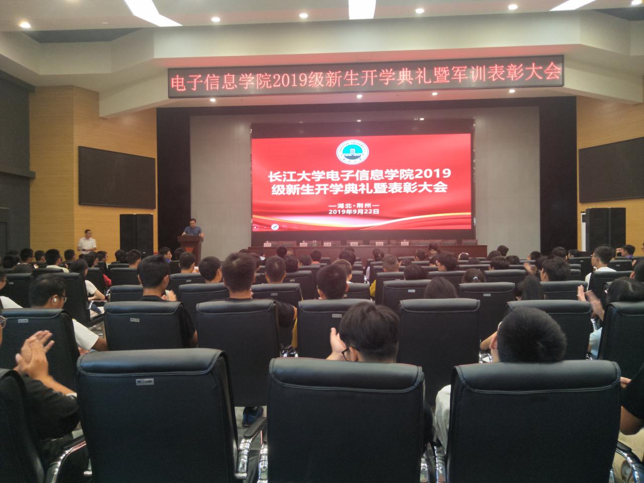 (通讯员 陈荣)9月22日三点,电子信息学院2019级新生开学典礼暨军训表彰大会于农科大楼1058报告厅举行。院长孙祥娥教授、党委书记刘逸、党委副书记郭启炜、电子信息系主任邹学玉教授、仪器系主任吴爱平副教授、电气系主任杨旭辉副教授出席此次会议。会议由郭启炜副书记主持。