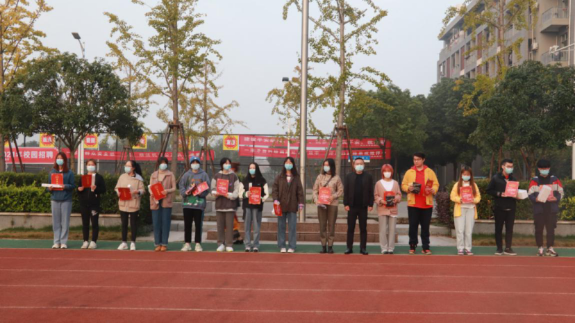 10月19日,“艺馨杯”专业基本功大赛颁奖仪式于早晨升旗仪式结束后进行。主持人宣读播音广编、美术设计类获奖名单后,由学院党委书记邹火明和副院长郑瑞丰为他们颁奖并合影。