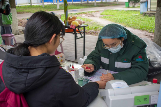 三月初晨,清风阵阵;风华绿荫,人潮涌动。清风拂过阵阵寒意,但依旧抵挡不住人心的温暖汇聚。大约早上九点,同学们有序地排着长队,依次进行信息登记,血液类型检验,静脉采血等环节,最后在献血车上由专业人员完成采血。醒目的宣传海报,让有兴趣或者仅是匆匆而过的同学们也能了解到关于一些献血的基本知识。活动当天,献血者满怀热情,而参加献血志愿者们用更贴心的服务来感谢这一份份爱心。