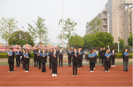 仪式第一项是学院青马小组和全体学生齐唱红歌《我和我的祖国》、《国家》和《长江之歌》,嘹亮的歌声展现了出同学们的朝气蓬勃,他们唱响红色经典,抒发时代豪情,用歌声迎接鲜艳国旗的到来。