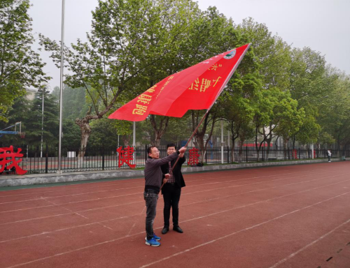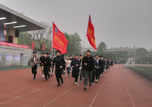 授旗时,竺正海代表学院接过“千班唱红歌,万人健康跑”旗。随后,在场学生围操场齐跑2圈,正式拉开了此次活动的序幕,其他班级也将陆续完成此活动。