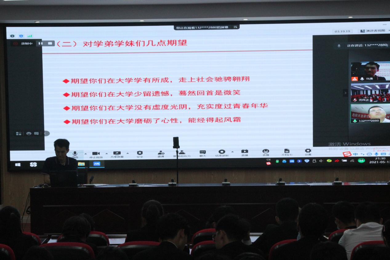 报告会上,校友舒坤分别从“学生干部学习生活可能存在的问题”、“学生干部自我认知及若干关键能力训练”、“对于学生干部的几点建议和期望”三方面进行了分享与交流。