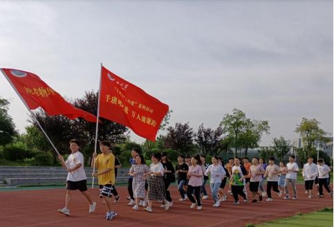 活动进行最后一项,授旗仪式。由油工学院党委副书记刘娥与地物学院党委副书记丁植磊进行了授旗仪式,授旗仪式的完成也代表着地物学院“千班唱红歌,万人接力跑”活动的正式启动。同学们都井然有序的以各班为单位,开始万人接力跑,即使炎热的天气也无法阻止他们奔跑的热情,红旗飘起的是中华民族的强盛,同学奔跑的是中国的未来,在举旗人的带领下同学们用奔跑的方式表达对党和祖国的祝福。