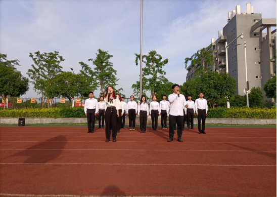 升旗仪式伴随着国旗护卫队的出旗正式开始,他们动作整齐划一,步伐坚定,国旗在气势磅礴的国歌声中缓缓升起,迎风飘扬。全体人员肃立,向国旗行注目礼,高声齐唱国歌,向伟大的祖国致以崇高的敬意和美好的祝福。活动第二项,学生代表田广发言,他的发言贯彻了“唱响百年华诞,接力跑出富强路”的理念,回顾了百年奋斗路程中无数先辈们奋斗的足迹,传递了百年奋斗中信仰的力量。紧接着由校青马为大家带来朗诵《党的赞歌》,表达吾辈青年愿在党旗下集结并随时准备好接受党和祖国的庄严检阅的心愿。青春之心永向党!活动第四项由胡锦龙,乔荍和院青马班同学领唱,地物学院全体同学合唱歌曲《映山红》,在悠扬的旋律中,同学们体会到了肩负在自己身上的历史与时代使命。