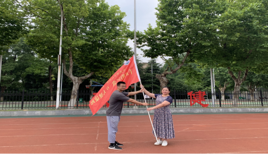 最后,教育与体育学院的文晓武老师为经济与管理学院院授旗,王中梅书记代表学院接受授旗,并宣布“千班唱红歌,万人健康跑”开跑,全体学生围绕操场齐跑两圈。