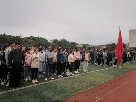 (通讯员:王宇奇)10月11日早上七点,化学与环境工程学院在东校区田径场隆重举行了升旗仪式。学院党委副书记李秋果,学工办主任刘敬敏,辅导员王娜,辅导员杨云锋出席仪式,全体2018、2019和2020级学生参加仪式。