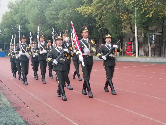国旗护卫队领队的一声令下,升旗仪式正式开始,护国旗、升国旗,全体人员高唱国歌。随后,李书记发表了讲话,她强调,10月10日是辛亥革命110周年纪念日,孙中山先生和辛亥革命的先驱为中华民族建立的历史功绩彪炳千秋,在辛亥革命中英勇奋斗和壮烈牺牲的志士们名垂青史,辛亥革命永远是中华民族伟大复兴征程上一座巍然屹立的里程碑。紧接着,李书记还就近期孟晚舟回国、热播电影《长津湖》等热门事件,提醒同学们如今中国国际地位不断提高的背后,是无数前辈的英勇就义,更是当代无数人在负重前行。而我们大学生,作为新一代青年,更要大力弘扬爱国主义精神,树立高度的民族自尊心和自信心,铸牢中华民族共同体意识,努力奋斗,成为国家的建设者和接班人。