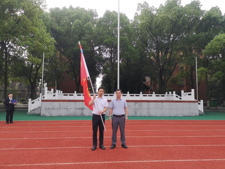 在活动的最后一项议程中,电信学院党委副书记郭启炜向我院传授了“千班唱红歌,万人健康跑”旗帜,我院万人健康跑正式开始,此次升旗仪式在全体同学绕操场健康跑两圈后结束。