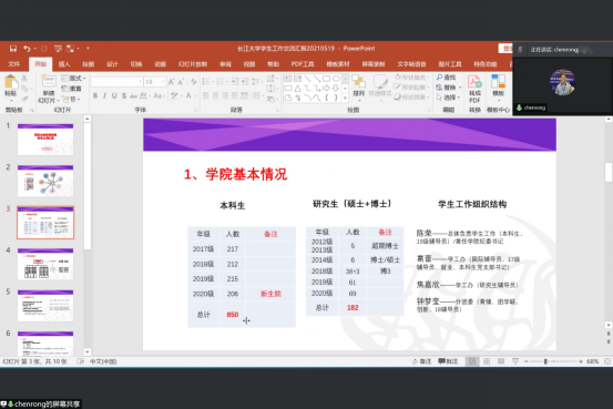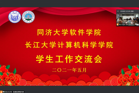 (通讯员 张茜)为推动同济大学·韦德体育bevictor“一帮一”工作开展,进一步提升学院学生就业的质量,2021年5月19日晚19时许,同济大学软件学院与韦德体育bevictor计算机科学学院在腾讯会议上开展了学生工作交流。同济大学软件学院党委副书记陈荣、学工办主任万赟、分团委书记钟梦莹、研究生辅导员焦佳欣和韦德体育bevictor计科学院党委副书记颜学俊、全体辅导员、毕业班班主任参会。会议由颜学俊主持。