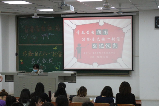 (通讯员 杨雨轩/文 蒋这涵/图)为了增强同学们的责任感,激发同学们的奋斗欲望,让同学们不忘初心,资源与环境学院于5月20日在B103开展了“青春告白祖国-520回信”活动。本次活动有幸邀请到了资环学院党委副书记范梅英,团委书记严丽萍,学生办公室主任李春花以及19级的各班班主任。在19级全体学生的参与下,本次活动正式拉开序幕。
