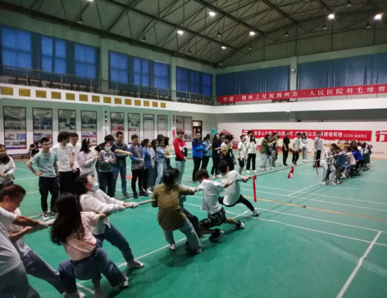 (通讯员 雍丽珍 兰珊珊/文)为了庆祝党的百年华诞,凝聚彰显社会担当、建设社会主义现代化的磅礴力量。同时为了进一步提高同学们的身体素质,展示新时代大学生的蓬勃朝气,活跃校园文化氛围,调动学生的积极性和主动性,激发同学们的团队协作精神和集体荣誉感,第一临床医学院分团委学生会于2021年5月16日下午14点,在学院食堂三楼羽毛球馆顺利举行了以“青春心向党·拼搏铸辉煌”为主题的趣味运动会,2018级全体同学参与活动,罗铜铠、周茜老师全程陪同。