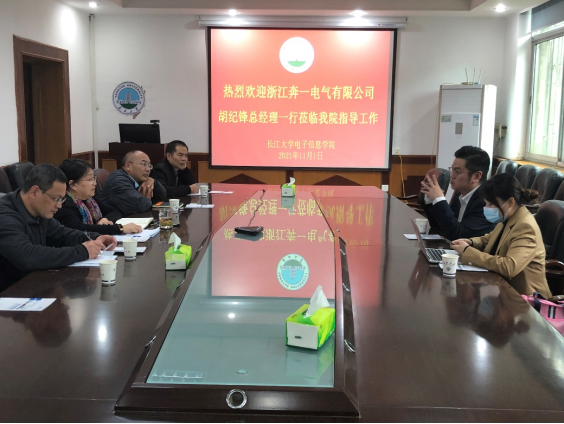 (通讯员 沈马锐)11月1日下午,浙江奔一电气有限公司战略规划部总监胡纪峰一行莅临我校,与我院就校企合作事宜进行交流洽谈。学院党委书记刘逸、党委副书记郭启炜、副院长蔡昌新、电气系副主任杨友平出席会议。