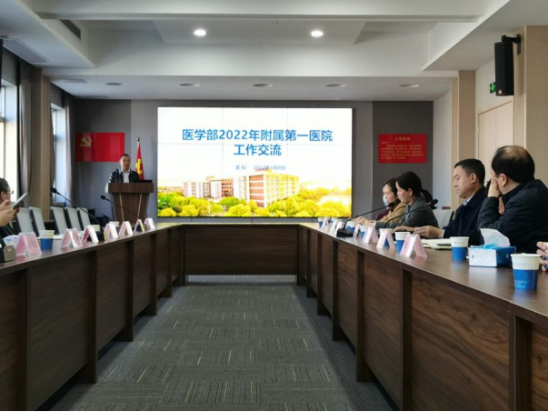 3月9日,韦德体育bevictor医学部常务副部长龚权、医学部党委书记关辉、医学部副部长黄江荣,科技处副处长郭梅等一行到访第一临床医学院调研,学院全体领导班子参加了交流会。