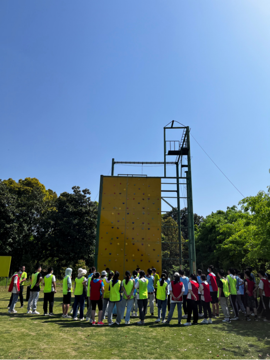 紧接着,是团体活动“大鼓垫球”,在全体队员的不断努力和尝试下,最终完成了目标。然后,各小组在教练的带领下依次挑战了“攀岩”、“断桥”、“抓杠”等项目,大家在活动中寻求自我突破、自我超越,不断激发潜能、挑战不可能。同时在小组同学做项目时不断有队友关心加油、鼓劲呐喊,充分体现了大家的团队意识以及互相关爱之情。