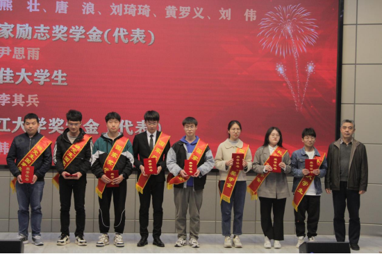 院长江厚顺教授为三好学生等优秀个人奖获得者、优秀集体奖获得者、文体类奖学金获得者代表颁奖。