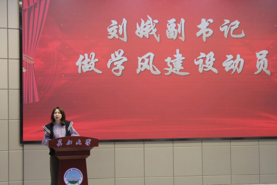 “勤学乐学好学善学,学无止境勇攀高峰。”学院党委副书记刘娥老师做学风建设动员,她从学风建设的意义、学风建设目标以及具体措施等方面做了详细介绍。她讲到:“希望同学们将心中的梦想转化为每一天的计划和坚持,勤于学习、善于思考、敏于探索、勇于创新,让青春在实干中闪光,让人生在实干中体现价值。”