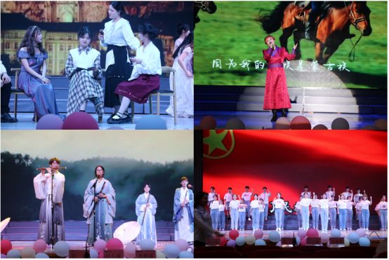 闭幕式文艺汇演以“青春向党·咏颂尧年”为主题,分为“盛世华章,继往开来,初心难忘谱新曲”“激扬青春,强国有我,英姿奋发正当时”两个篇章。整台晚会彰显特色、突出专业、精彩纷呈,线上观众热情高涨。汉语、英语、日语、俄语、法语5个语种演唱的歌曲《追梦赤子心》,带领观众领略不同语言的魅力;笛萧合奏《无羁》,古风古韵,回味无穷;外文剧团呈现的经典剧作《Midnight Pairs(午夜巴黎)》,地道的英语、绅士且高雅的表演、华丽的场景深深打动着观众们的心;日语配音节目《辉夜姬大小姐》、韩艳丽博士倾情演唱蒙语歌曲《忘不了》等节目全面展示了不同语言的文化底蕴与特色……外国语学院师生用丰富的艺术形式展现多彩校园文化生活。颁奖晚会在合唱《光荣啊,中国共青团》中圆满落幕。
