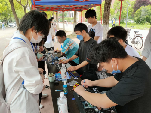 本次开幕式现场分为四个区域,分别是志愿活动区、游戏区、领奖区和计算机知识图文展。在志愿活动区有志愿者帮助同学清灰及重装系统等优化电脑的义务活动,由计算机科学学院极客班承办。本活动旨在鼓励大家将所学的知识运用到实际,提高动手实践能力。同时运用所学知识力所能及地服务他人。除此之外的游戏区有乐趣横生的套圈小游戏,在游戏中大家都能比较轻松的获得定制口罩、钥匙扣及多肉小盆栽。开幕式现场的气氛十分融洽,同学们对于本次活动也是无不称赞。