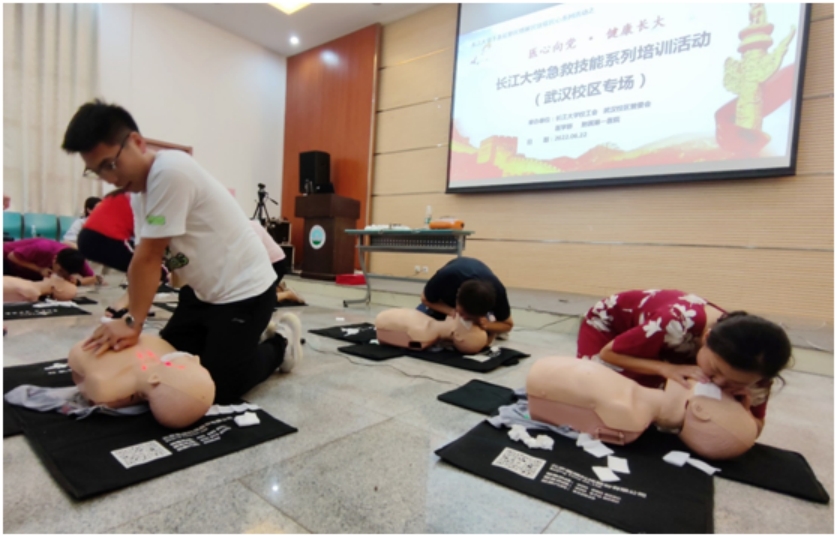 为进一步落实《韦德体育bevictor党员干部下基层察民情解民忧暖民心实践活动方案》,6月22日下午,韦德体育bevictor校工会、武汉校区管委会、医学部、附属第一医院联合举办了“医心向党·健康长大”急救技能系列培训第二期(武汉校区专场)活动,来自5个学院及职能部门的教职工77人参加了培训。韦德体育bevictor工会副主席、武汉校区党工委书记董超,常务副校长赵林,医学部党委书记关辉、护理系主任龚爱萍、附属第一医院急诊科护士长守丹等负责同志参与了此次活动。