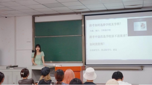 已考取中国传媒大学的杨汐特意通过视频方式和大家详细分享了各科备考的方法,她提到学习中点滴积累是积聚爆发力量的必要条件,要明确自己的考研态度;已考取武汉大学的学生刘畅说:要有梦想,并为梦想付出努力,同时,学会给自己制定合理的计划,从细节着手,扎实复习,垒土筑台;已拿到墨尔本大学offer的江晨从“要不要留学、雅思备考、英语口语”三个方面向大家揭开了出国留学的神秘面纱;已考取陕西师范大学的唐彩妮同学表示,学好政治的前提是坚持做题,做题的重点在质不在量,应先把握整体框架,专业课应先做到通读教材,再有针对性的分点背诵;已考取湖北省委党校的黄倩雯同学分享了自己的跨考经历,并勉励在场所有同学,考研最关键的是找到适合自己的学习方法,不要害怕与其他人不一样;调剂成功的刘恬恬同学则着重介绍了了调剂的经验以及心态的调整,她表示考研路上不要大喜大悲,保持平和,学会抓住每一次机会。考研成功的学生们在经验分享时,都不约而同的表达了对母校的感恩、祝福和不舍。