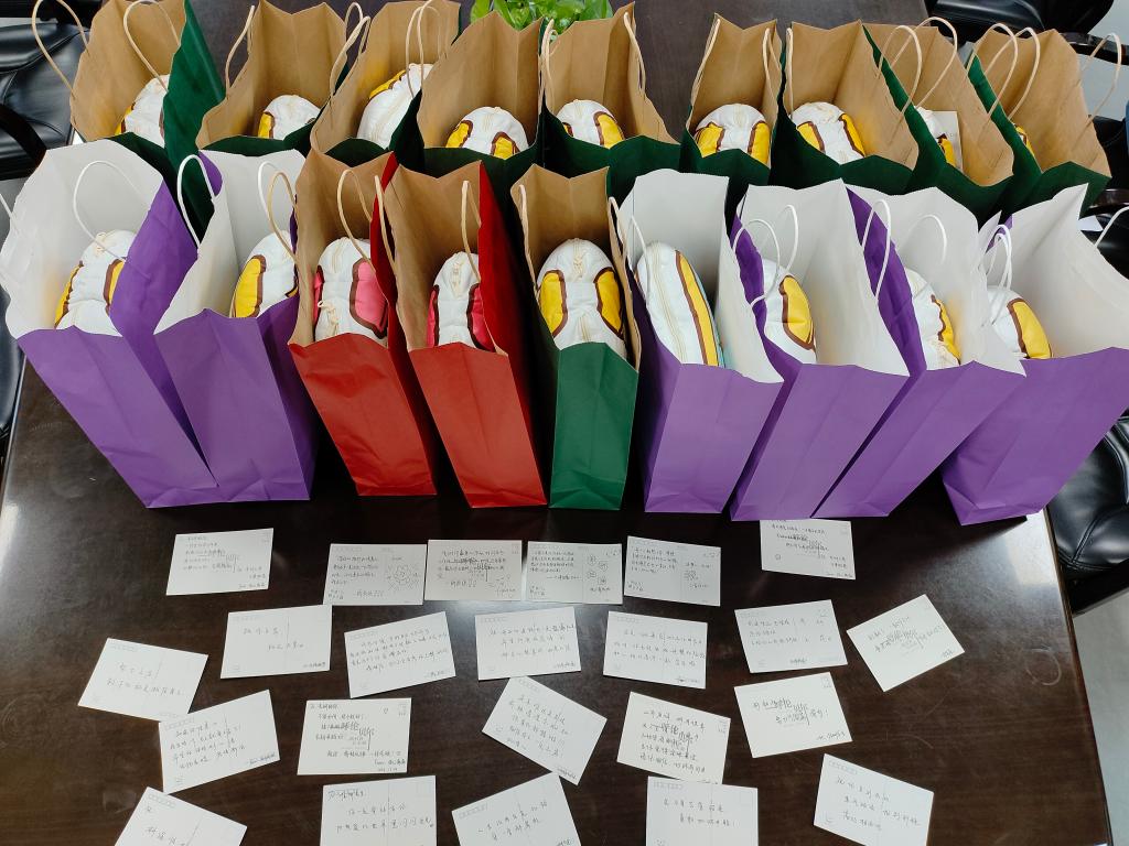 老师们为考研学子送上学院精心准备的特色考研“加油毯”和志愿者手写的祝福卡片。党委副书记平先锋解释说,“桃子毯”寓意吉祥健康,“满分毯”寓意取得佳绩,“汽水毯”寓意旗开得胜,送出这些礼物,是借助它们美好的寓意,祝愿同学们考研成功。收到礼物后,考生们纷纷表示“又惊喜又感动”。景园31901班的向琼瑶同学分享道:“我感受到了学院满满的祝福与支持,我们定不负众望,砥砺前行,争取考出好成绩。”