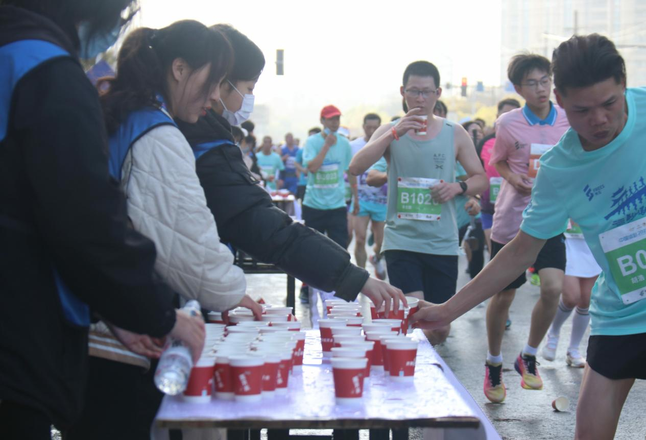 上午7时30分,起跑枪声响起,荆州马拉松赛事正式开始,各岗位志愿者也迅速进入工作状态。赛程中,志愿者们各司其职,合作完成倒水、递水和递食物等服务工作,他们热情的加油呐喊充分展现出青年大学生的青春活力,身着蓝马甲的志愿者成为街道上一道靓丽的风景线。