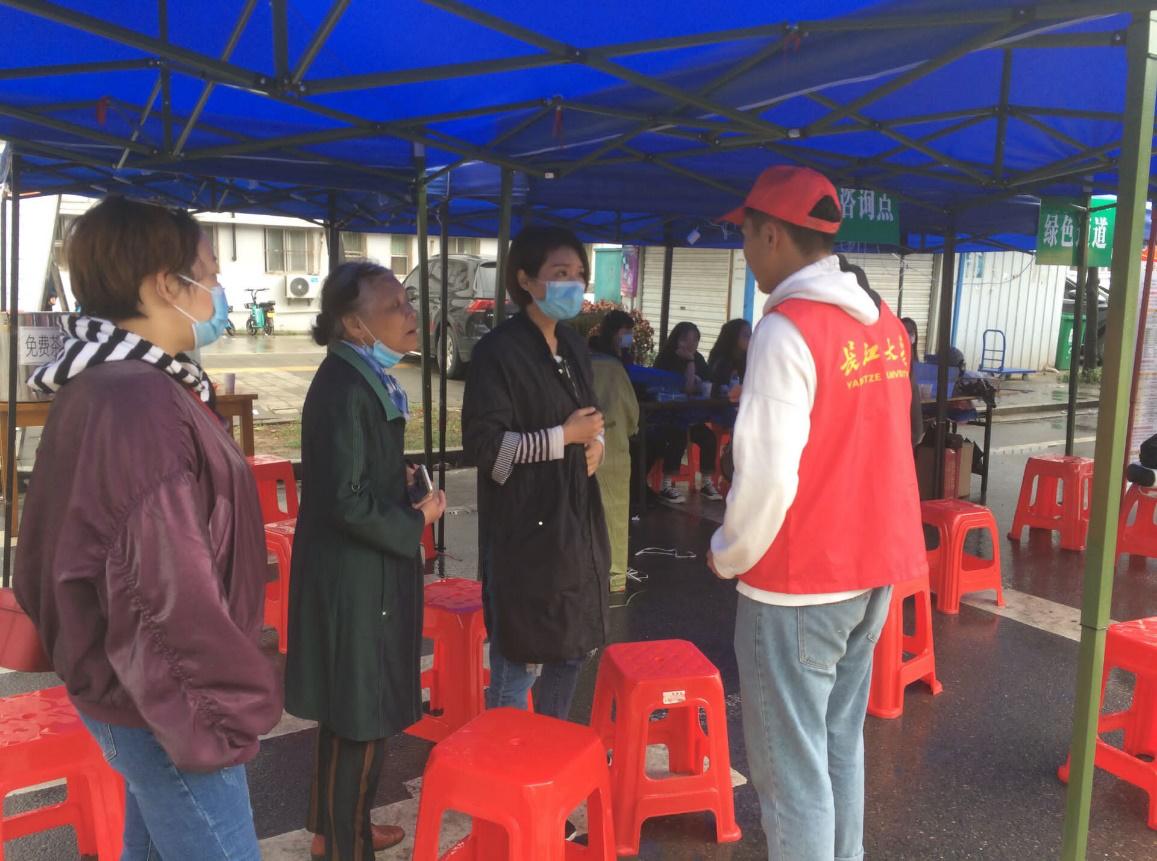 志愿者们在综合服务点搭帐篷给新生和其家长们答疑解惑
