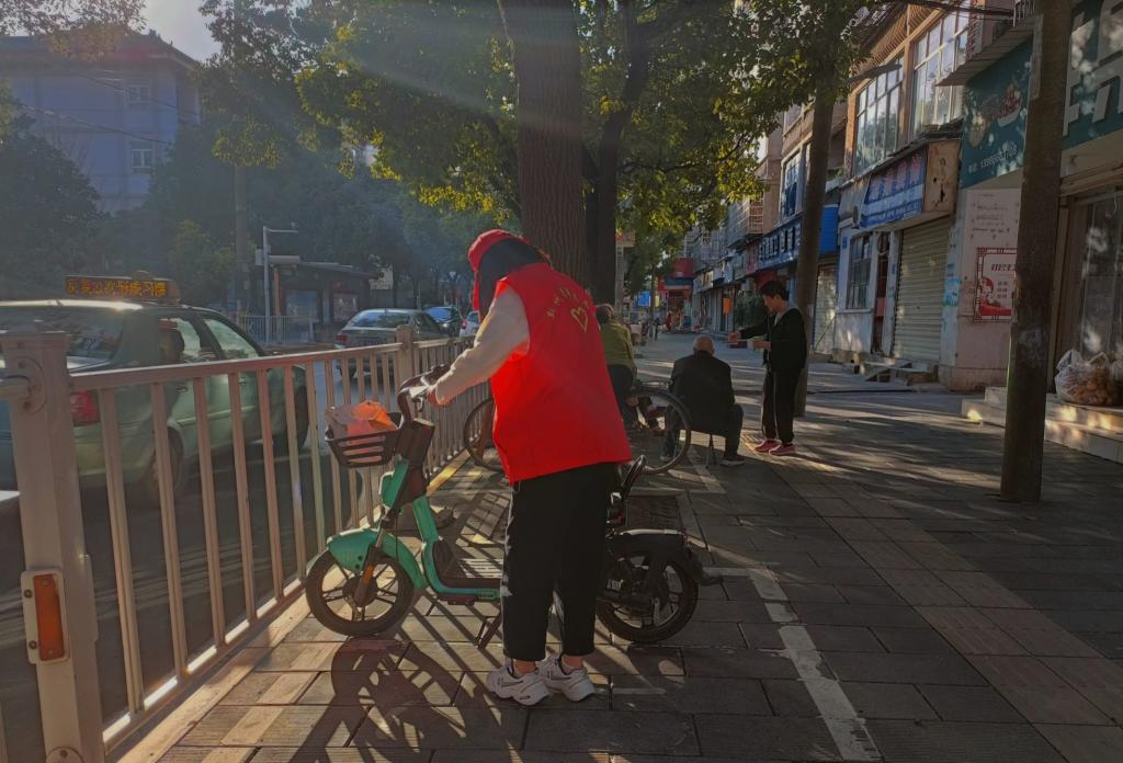 志愿者们拿着垃圾钳、垃圾袋等工具,深入大街小巷、卫生死角,将地面上、绿化带里的纸屑、废弃塑料袋、烟头、果皮等废弃物一一捡起,投入垃圾袋,充分发扬了“不怕脏、不怕累”的志愿服务精神。除此之外,他们穿梭于各个停车点之间,将路边停放不规范的代步车及时整理并恰当地摆放,同时对车辆乱停、乱穿马路等不文明行为进行积极劝导。