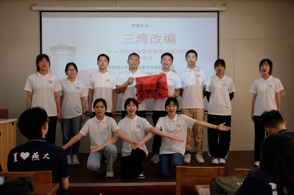 开营后,基地罗曦老师用生动有趣的语言为实践队伍带来“三湾改编”情景教学,详细介绍“三湾改编”的历史背景、开展过程及长远影响,现场互动氛围浓厚。三湾改编在整编部队、“支部建在连上”基础上,创造性地实行民主制度,建立新型的官兵关系,在连以上设立士兵委员会。理论教学结束后,各班模拟“三湾改编”军队建制,选出班长、宣传员、安全员、炊事员及士兵委员会,并依次进行风采展示。三个半小时拓展讲演,让队员们在实践中深刻理解为什么井冈山道路是中国革命胜利的唯一正确道路,三湾改编是井冈山道路的第一块奠基石。